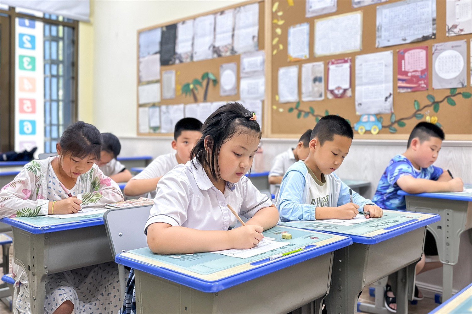 老師為孩子們講解練字技巧